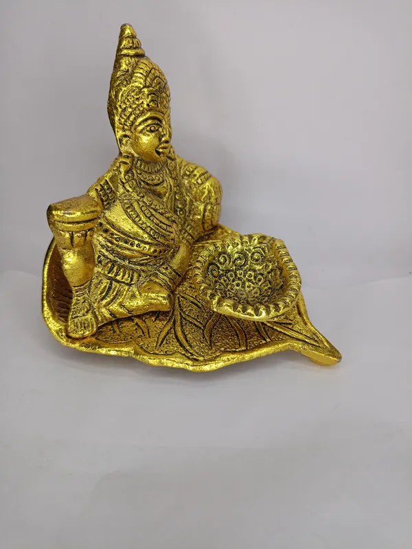 Golden Lord Kuber Diya Idol For Pooja Room And Home Decor